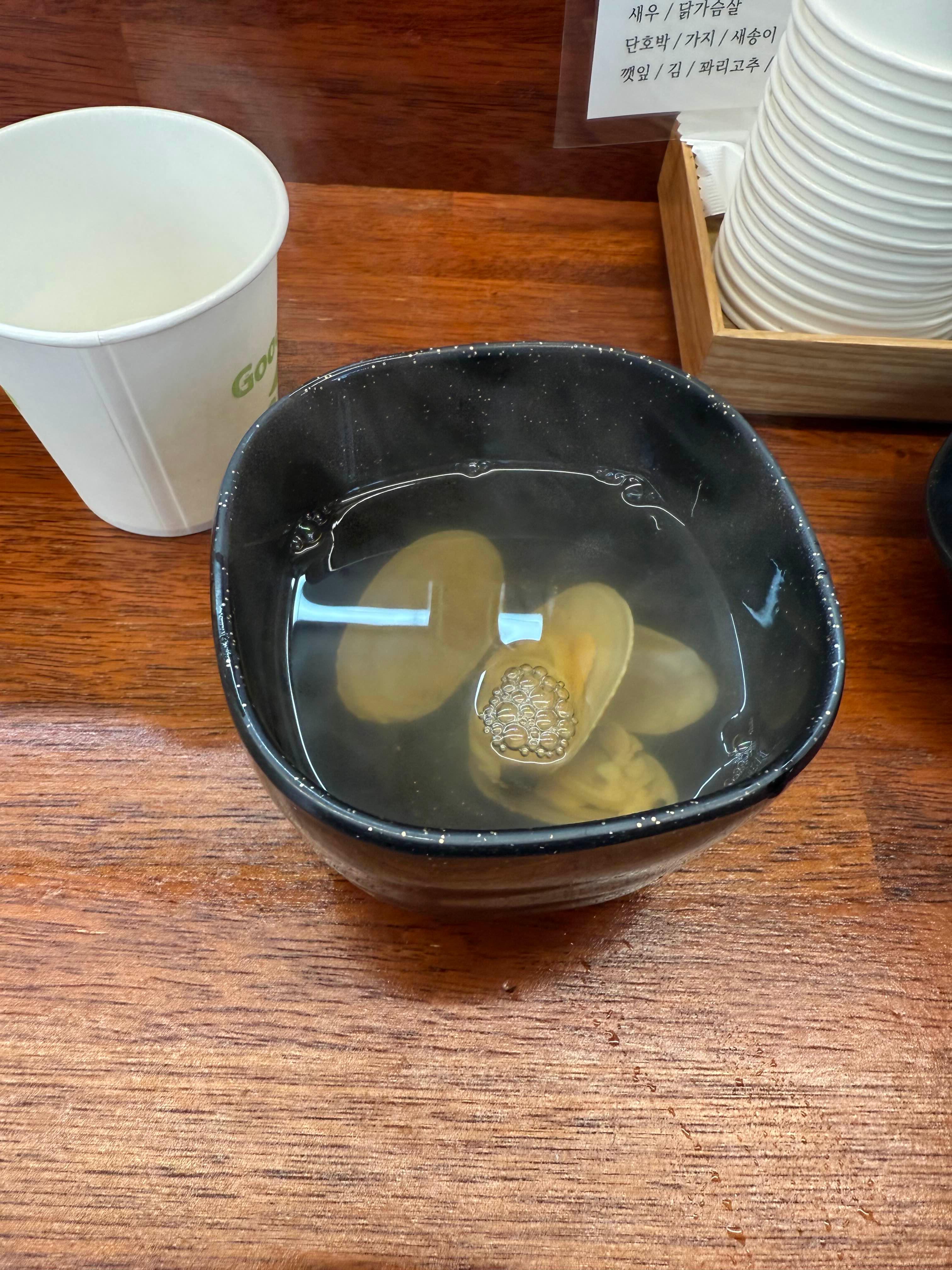 기본으로 나오는 조개탕이 뜨끈하고 깔끔해서 튀김 먹다 느끼한 부분을 싹 잡아줘요.
