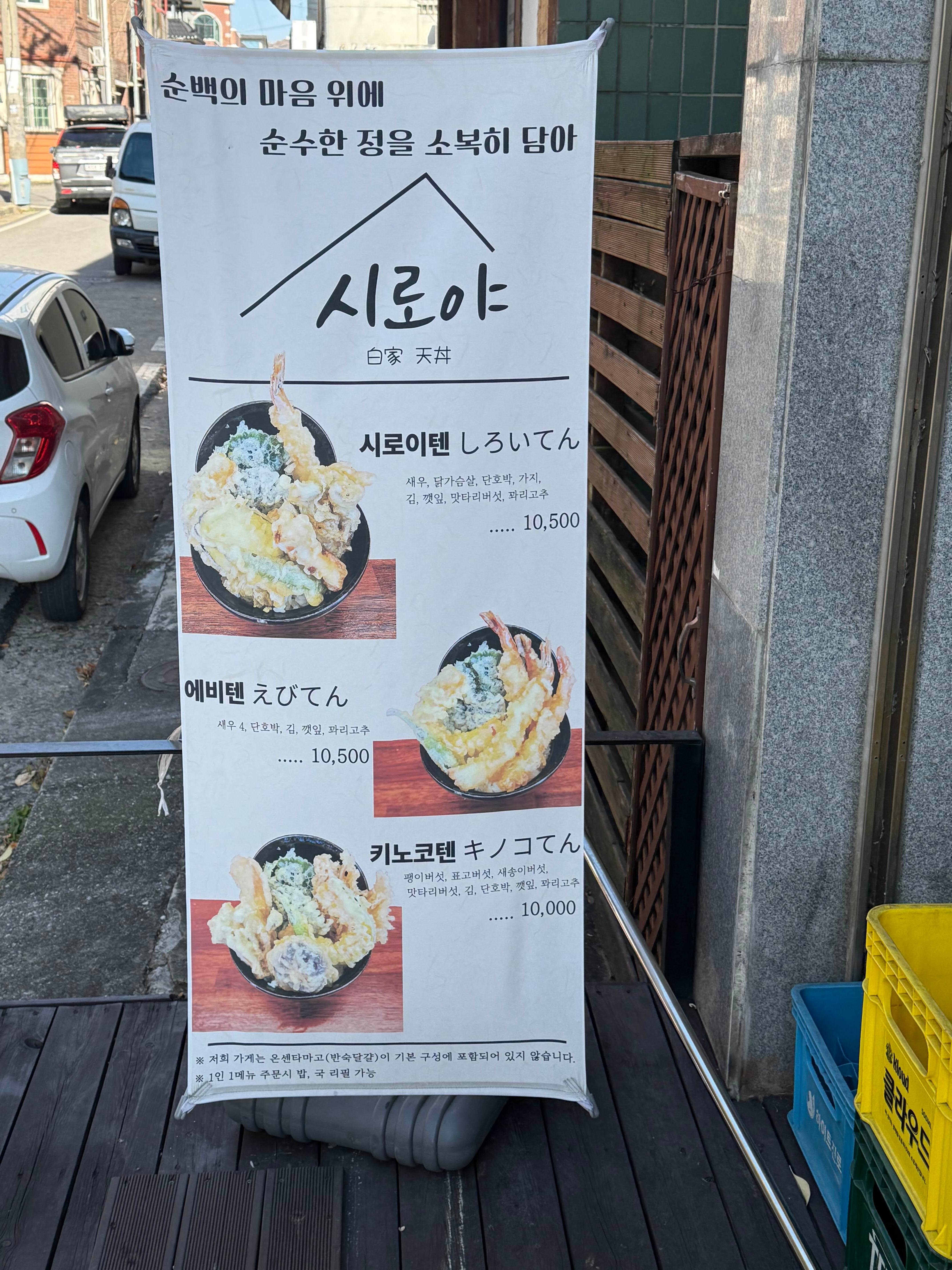 솔직히 텐동은 기름 냄새 많이 나거나 텁텁하면 금방 물리는데, 시로야 텐동은 튀김이 가볍고 재료 맛이 살아있어서 끝까지 맛있게 먹을 수 있었던 곳입니다.