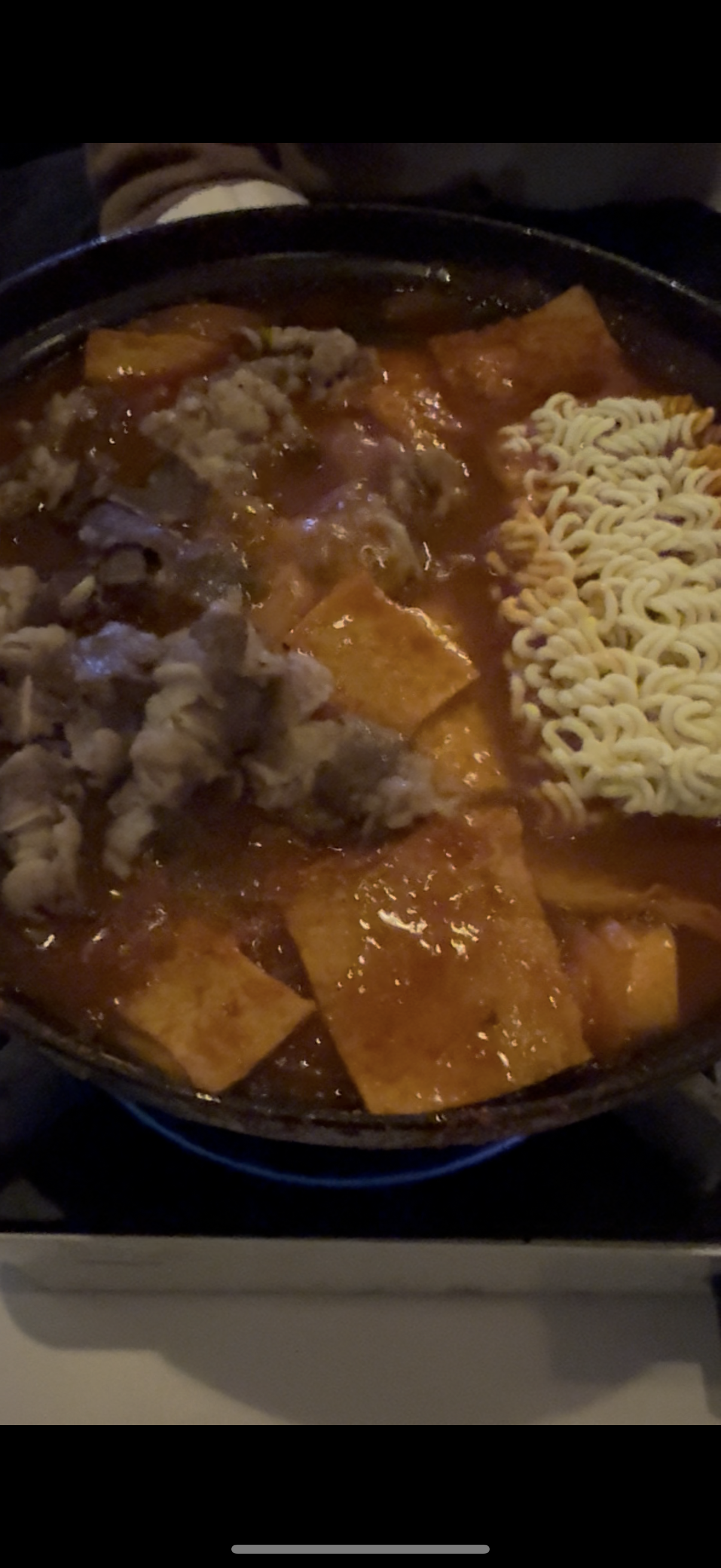 사진은 흔들렸지만 실제로는 국물이 보글보글 끓으면서, 우삼겹이 위에 촉촉하게 얹혀 있고 옥수수까지 들어 있어서 비주얼 만족감도 꽤 높았어요.